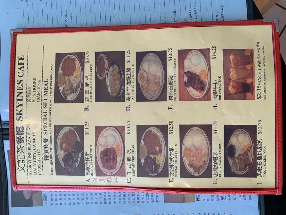 Introducing Skyline's Cafe, a hidden gem in Daly City offering a taste of Cantonese cuisine with a side of nostalgia. Located at 87 Skyline Plaza, this cozy cafe provides a variety of menu options including Baked Pork Chop Rice, Curry Beef Rice, Pork Cutlet over Rice, and Chicken Cutlet over Rice. Customers rave about the generous portions and affordable prices, making it a popular choice for comfort Chinese/HK food in the SF area. The cafe's interior walls adorned with cartoon and anime murals add a cool vibe to the dining experience. While the service may lack warmth, the quick delivery of delicious dishes like the Beef and Black Bean entree and the Salt and Pepper Tofu make up for it. Overall, Skyline's Cafe offers a taste of authentic Chinese flavors at a budget-friendly price point.